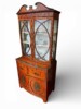 FurnitureA handsome Georgian era mahogany sewing or work table from the early 1800s. Satin wood banding decorates the mahogany throughout to include: the top with the two drop leaves, the two symmetrical front and back drawers ( the front drawer opens full depth vs the back is fixed) and the quatrefoil feet with brass caps and casters.
