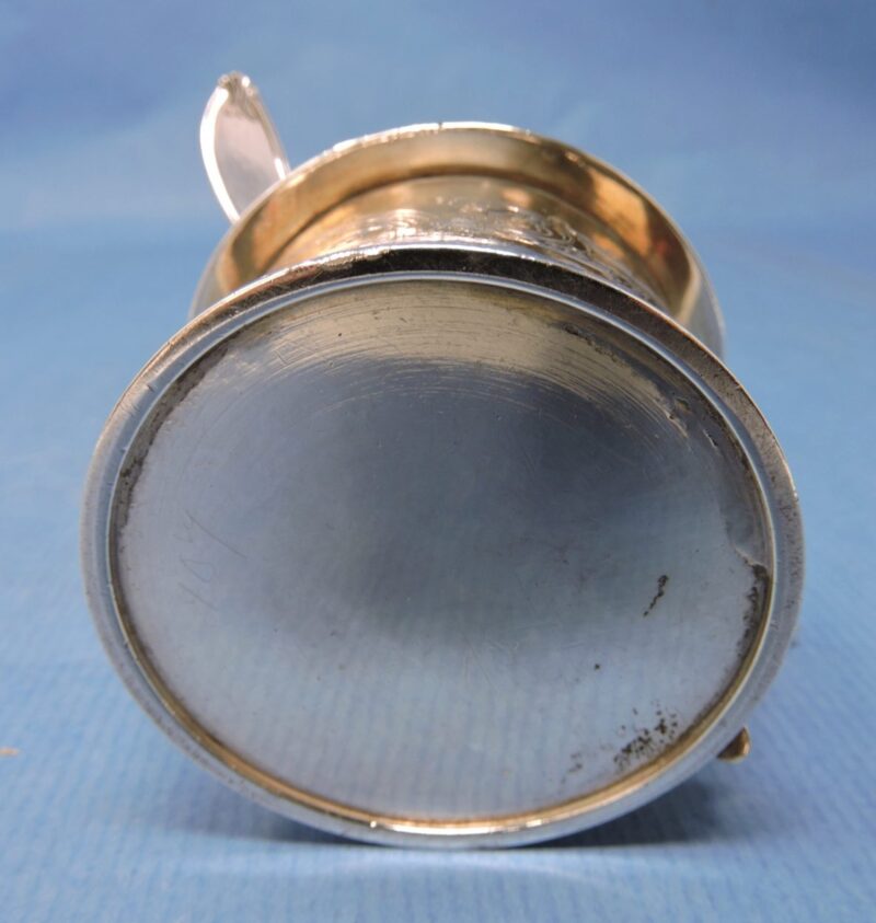 English Hallmarked (London 1837) Engraved Sterling Silver Mustard Pot by Chas.Fox, Cobalt Blue Glass Liner