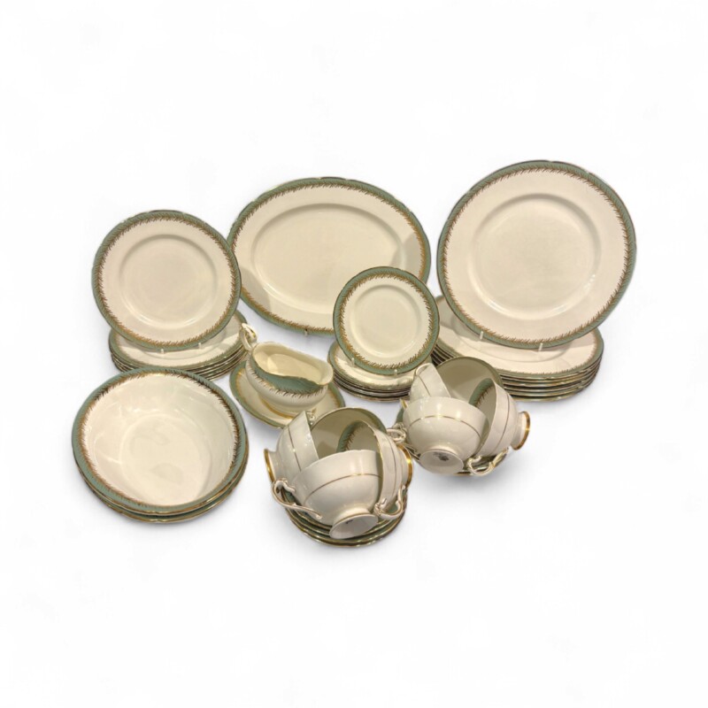 English Paragon Dinner Set for 6, Pattern # Z1557 , Sage Green Scalloped Edge/Gold Laurel, Mid 20th Century (c. 1950s-1960s)