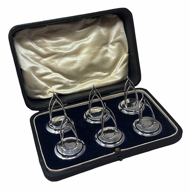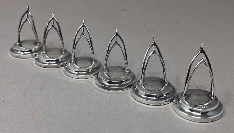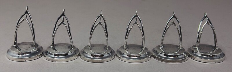 English Sterling Place Card Holders, Impressive “Wishbone” Design, Set of 6, Hallmarked Birmingham 1911