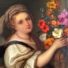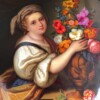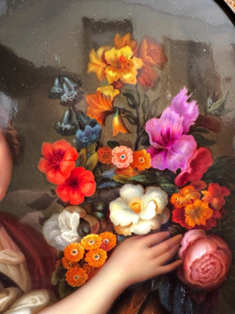 Exquisite Berlin KPM Large Hand Painted Porcelain Plaque, Portrait of a Young Girl with a Vase of Flowers, Late 19th Century