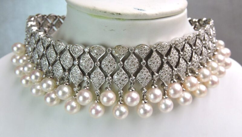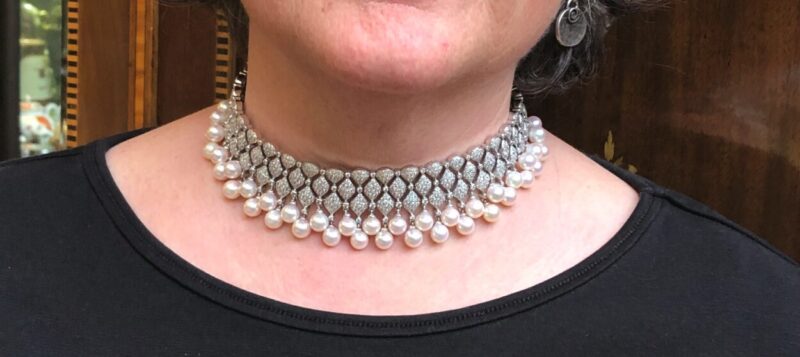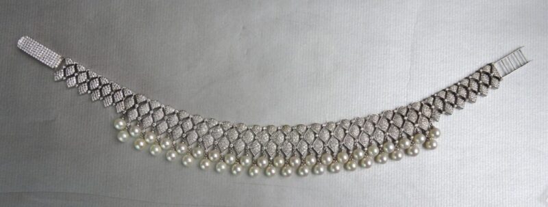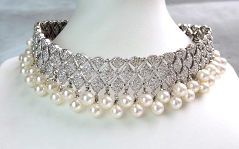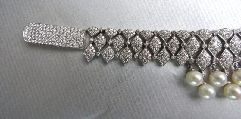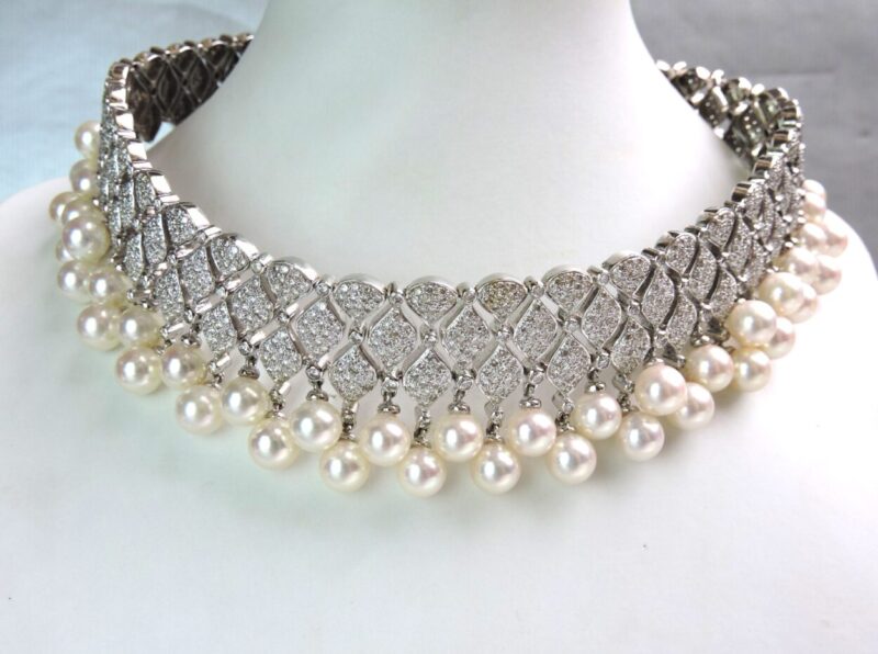 Exquisite Custom 18k White Gold Choker/Necklace with Diamonds, Pearls – 1450 diamonds & 41 Pearls.