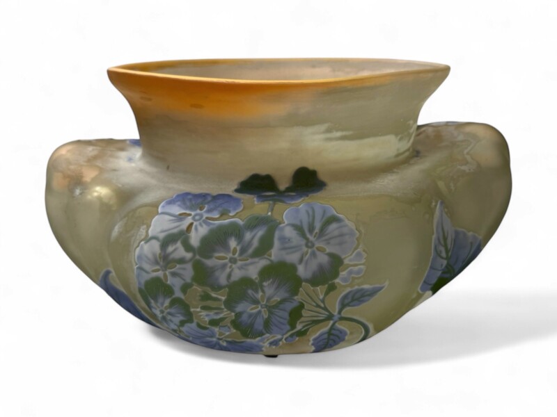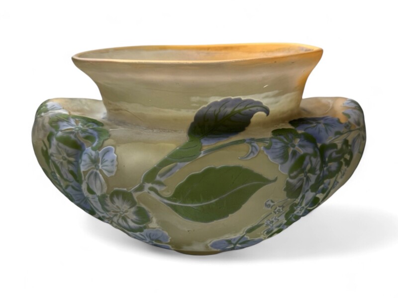 Exquisite Emilé Gallé French Art Nouveau, Large Boat Shaped Cameo Vase with Hydrangeas – circa 1905