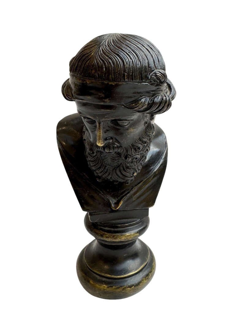 v** SOLD ARCHIVES **vA superb ‘Grand Tour’ bronze bust, traditionally described as Dionysus (Dionysos), after the original excavated at the Villa of the Papyri in 1754, by the Sabatino and Sons foundry, Naples. Mounted on a faux-porphyry base. Superb quality, original patination. Alongside the acquisition of knowledge, a major objective of the Grand Tourists was to collect souvenirs of their travels. This included mementos such as paintings and sculpture, coins, antiques and furniture.