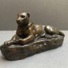 v** SOLD ARCHIVES **vA lovely bronze sculpture of a Panther laying on rocky ground. The animal sits in a very stoic pose and there is great detail in this animal sculpture by Antoine Louis Barye (1795-1875). Barye was an artist known for his animal subjects.