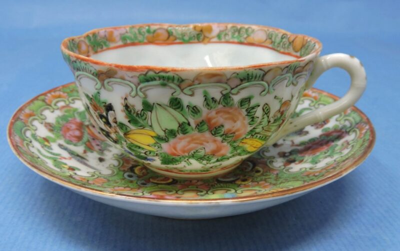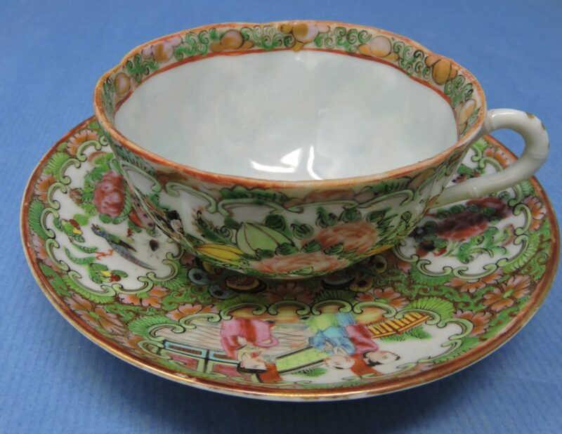 “Famille Rose” Chinese Painted Porcelain Wide Mouth Cup and Saucer – Sold Separately