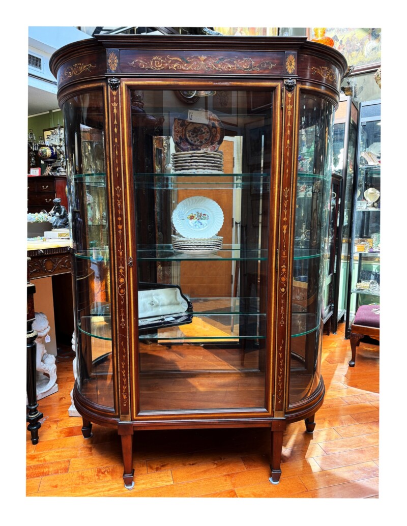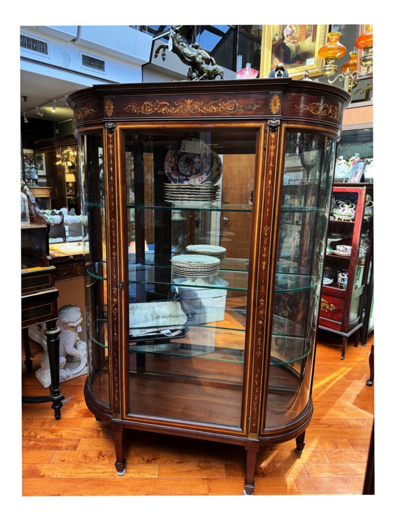 Fine Quality Edwardian Mahogany Display Cabinet with Satinwood Inlay & Curved Glass, Circa 1900