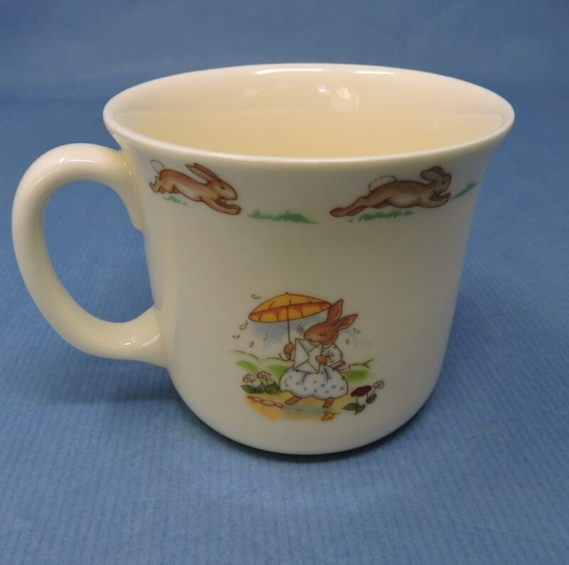 On the underside of the mug is the Royal Doulton maker’s marks and it reads “English Fine Bone China. “Bunnykins”. Copyright 1936. Royal Doulton”.
