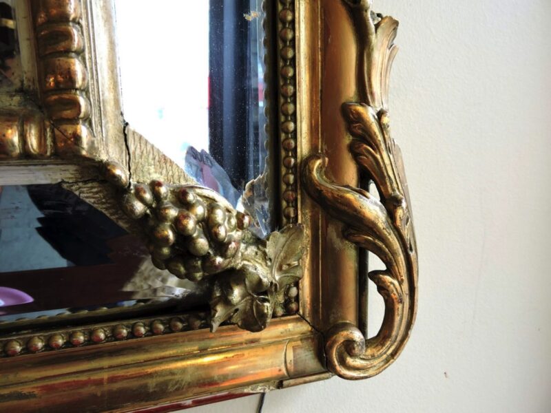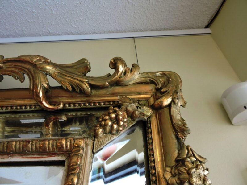 French 19th Century Gilt Wood “Cushion” Mirror with Floral and Fruit Decoration