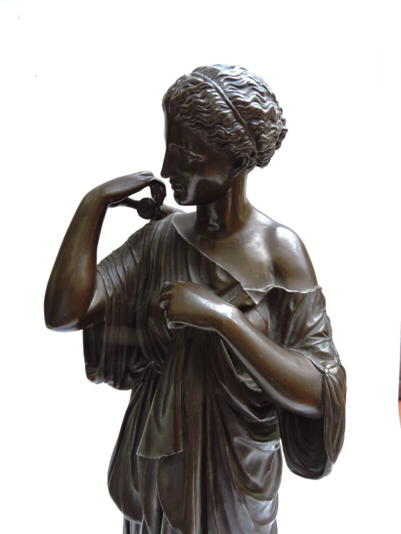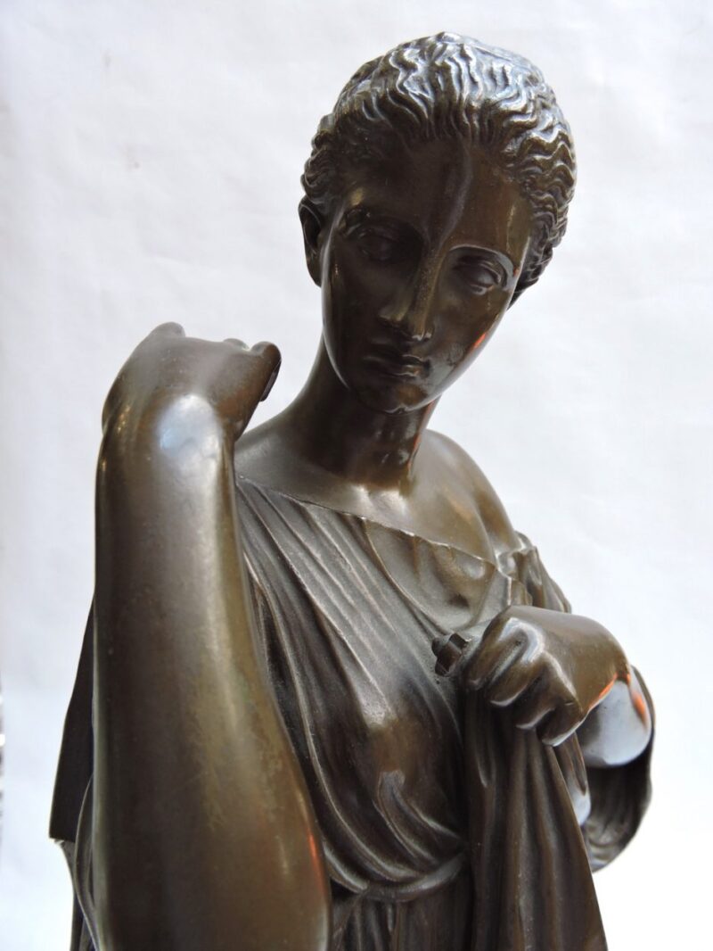 v** SOLD ARCHIVES **vA French, late 19th century beautifully patina’d large bronze figure of a female figure – ‘Diana of Gabii’ – in classical drapery after the sculpture (in marble) that is attributed to Praxiteles.