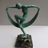 French Art Deco Green Patina’d Spelter Figurine of a Woman Dancer by Max Le Verrier – Titled ‘Danseuses a la Draperie’