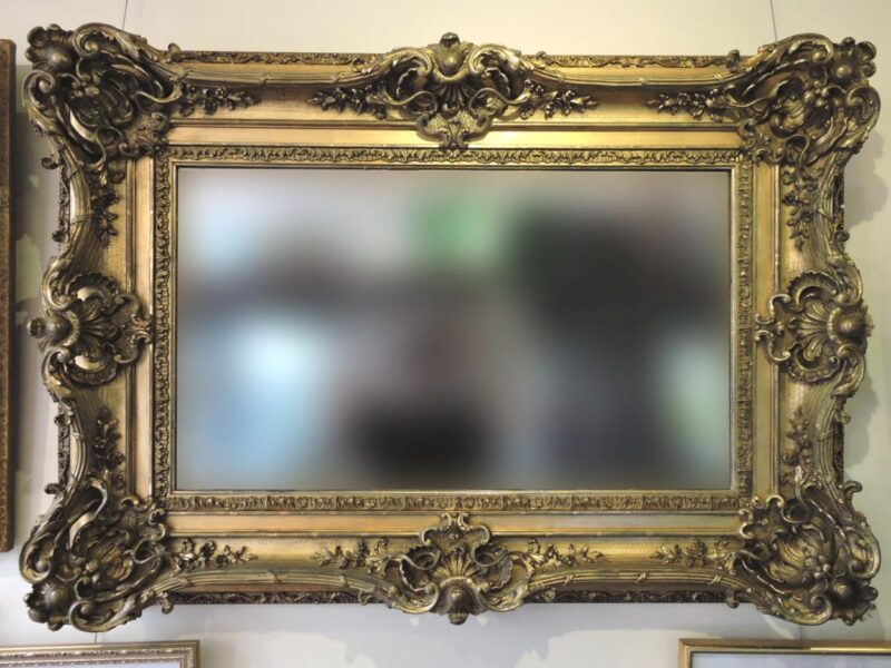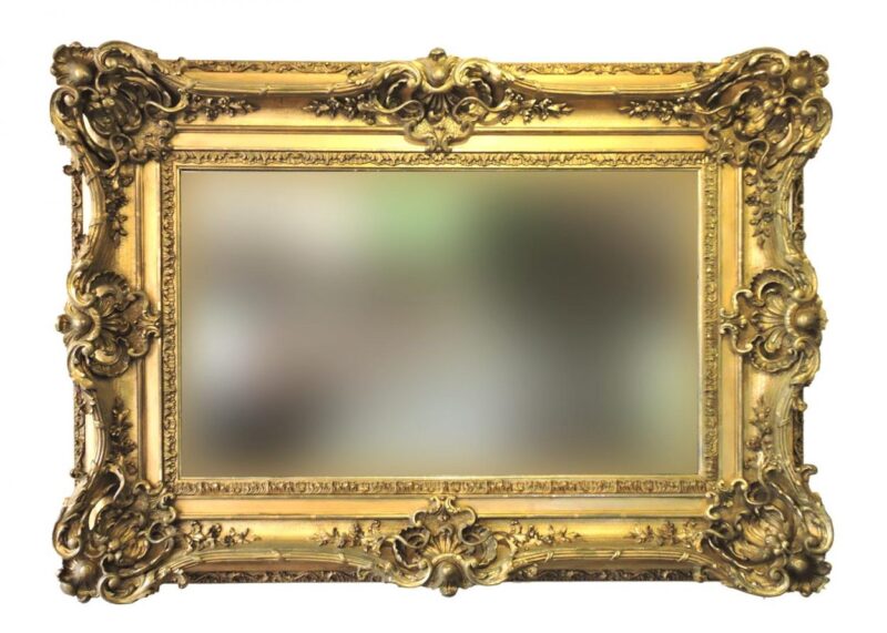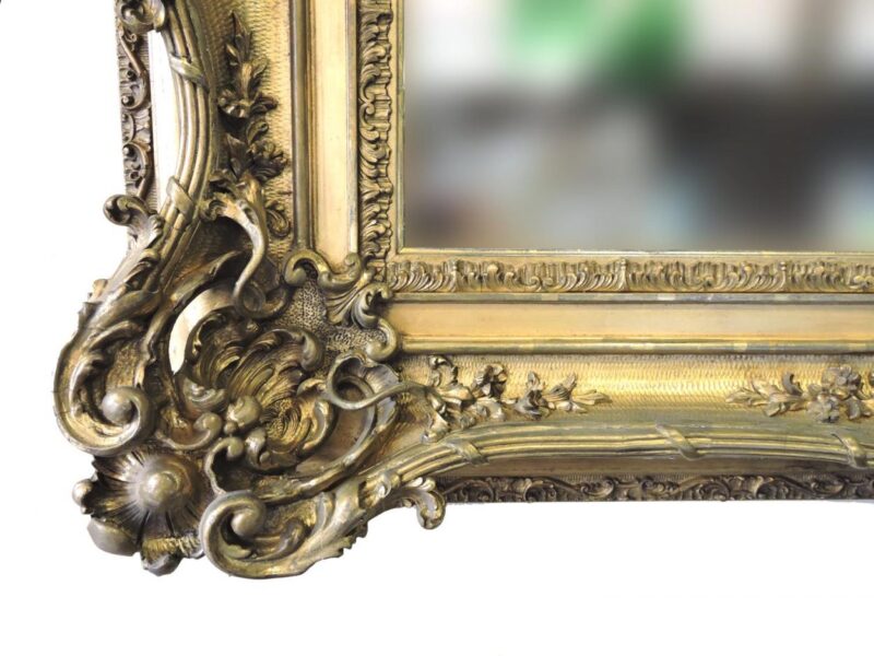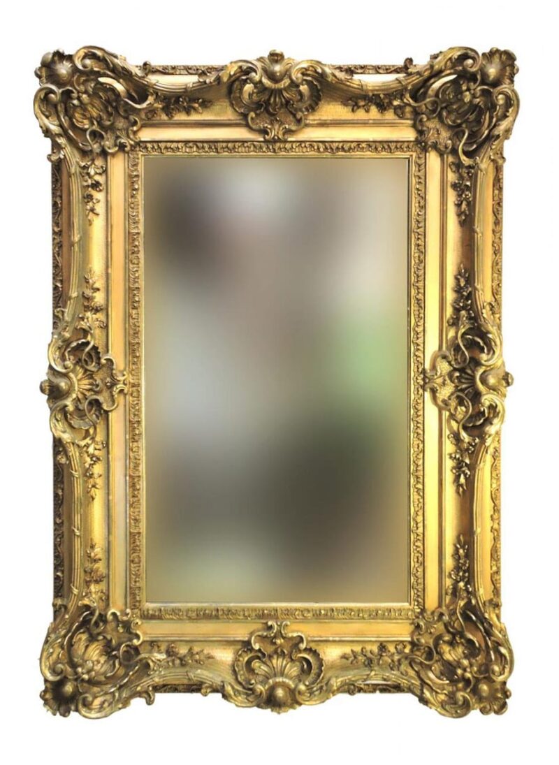 A wonderful elaborately decorated 19th century French gilt wood, plaster and gesso wall mirror.