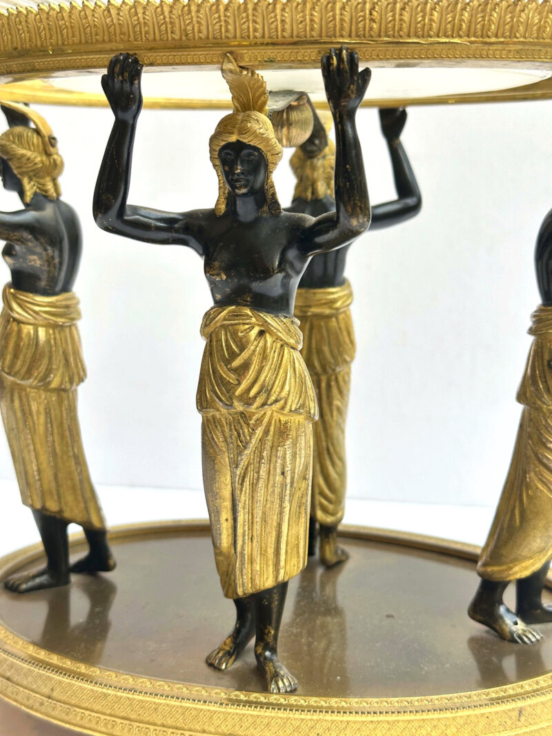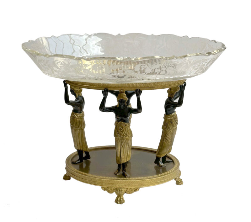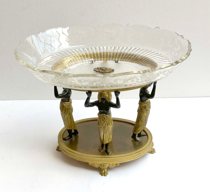 French Empire Style Gilt Bronze & Crystal Centerpiece with ‘Nubian Women’ Figural Supports.