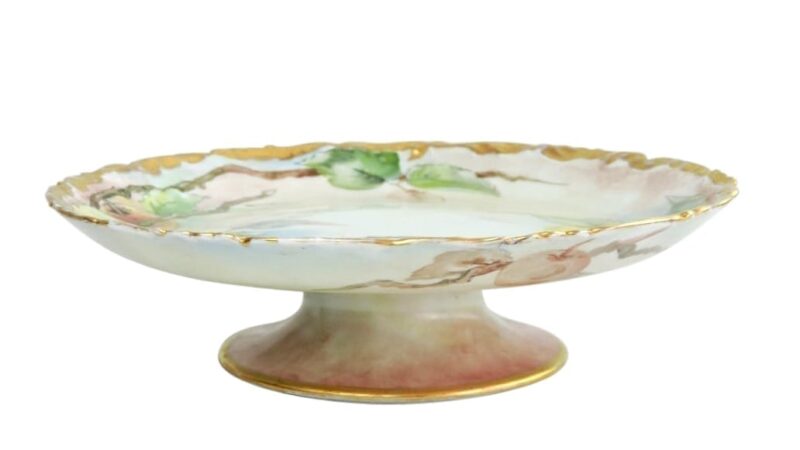 Limoges Hand Painted Pedestal Cake Server – Signed and Dated 1912.