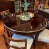 French Mahogany Demi-lune – Converts to Round Games Table / Round Dining Room Table with Bronze Trim
