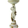 A large marble putti sculpture with applied gilt bronze, it dates 19th century, France. It consists of a long classical figure of child (in marble) wearing a robe (in bronze), holding a large round platform, and has a footed pedestal. It is beautifully decorated with applied gilt bronze, with accents of bead, leaf and floral embellishments.