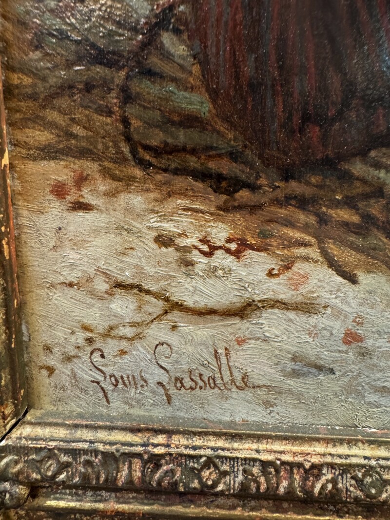 v** SOLD ARCHIVES **vLouis Lassalle is the painter’s pseudonym name for which he is known, but in fact his surname is Cabaillot. He began his career as a draughtsman and lithographer from 1828-1854. He lived in Paris until 1878 and then moved to Ecouen, a “painter’s colony” outside Paris where he became a member of the association “L’ecole d’Ecouen” . He married and had a son who also became a painter. His first Salon was in 1850 where he presented 3 paintings that earned him a place in the Salon exhibits until his last days. He received government commissions that were visited by Napoleon III and was honoured by the Queen of England who purchased an artwork.