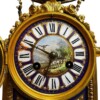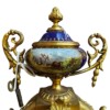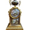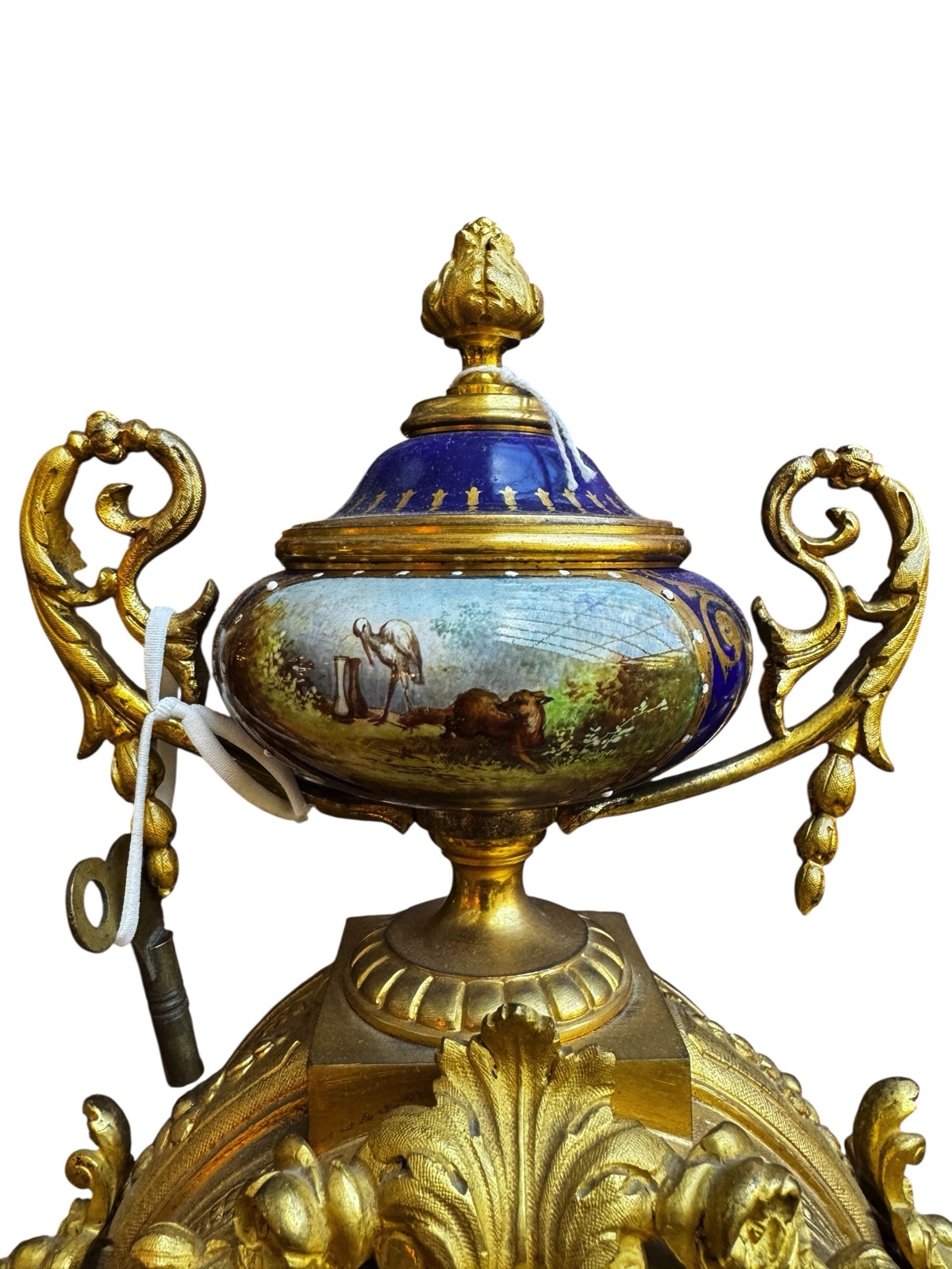 The combination of Sevres style hand painted porcelain and ormolu/gilded bronze artistry with clockwork creates a highly decorative ornate sculptural piece.