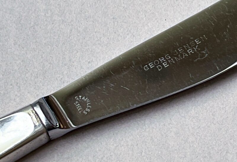 v** SOLD ARCHIVES **vThis Georg Jensen of Denmark sterling set in the celebrated “Cypress” pattern consists of 60 sterling marked pieces and includes the wood storage box . The Cypress pattern’s inception won a Scandinavian design competition in 1953 to celebrate Georg Jensen’s 50 year jubilee. The history of Georg Jenson speaks to the timeless quality of craftsmanship and design. The large number of pieces in the set is of great value for a “Jensen” beginning or to add into an existing set.