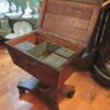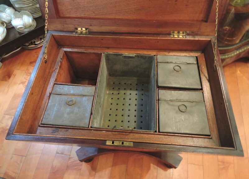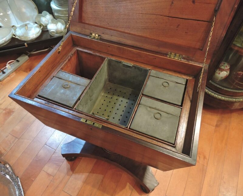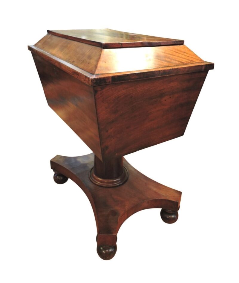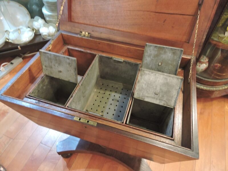 Georgian English Flame Mahogany Teapoy on Stand