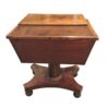 Here is a wonderful Georgian period Mahogany teapoy on its stand. The caddy sits on a circular post which rests on a rectangular base with 4 bun feet. The centre of the top has a raised rectangular lid and the fitted interior consists of tin storage containers.