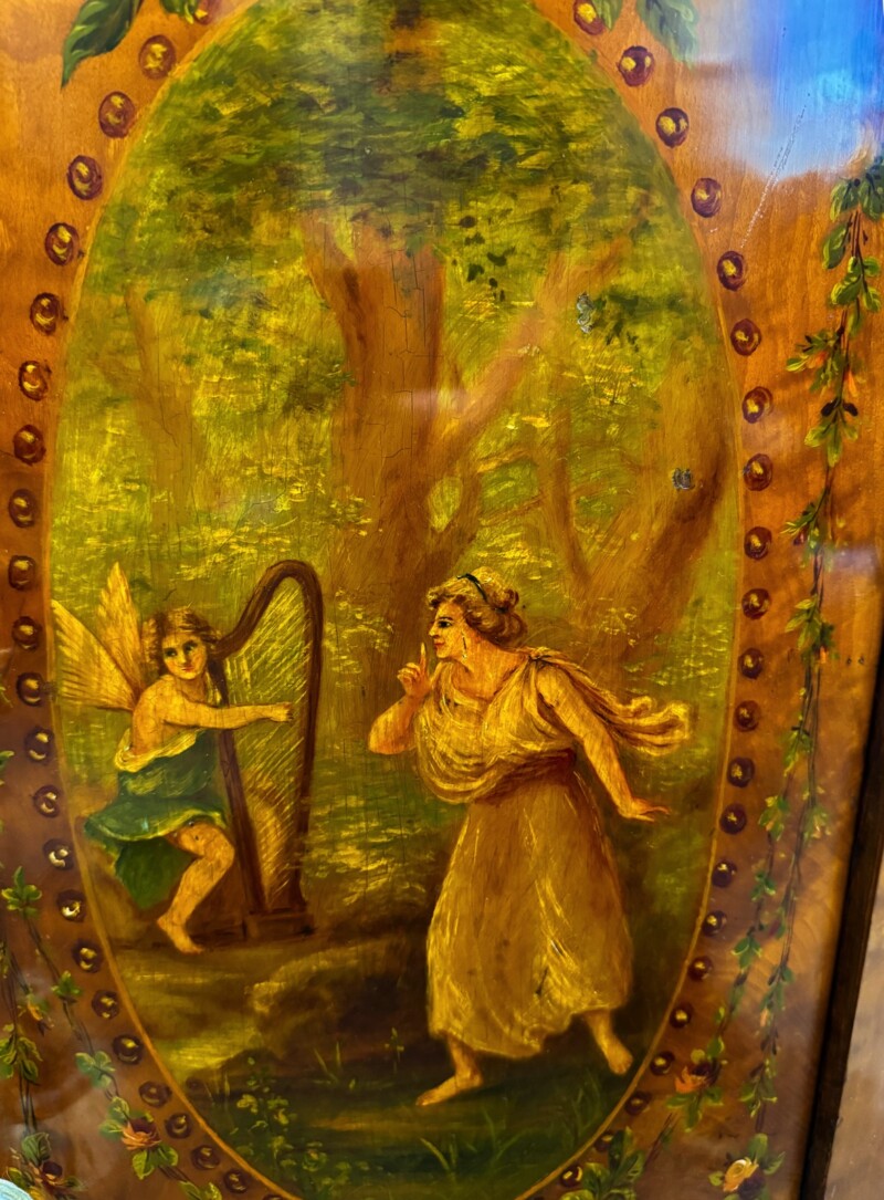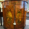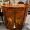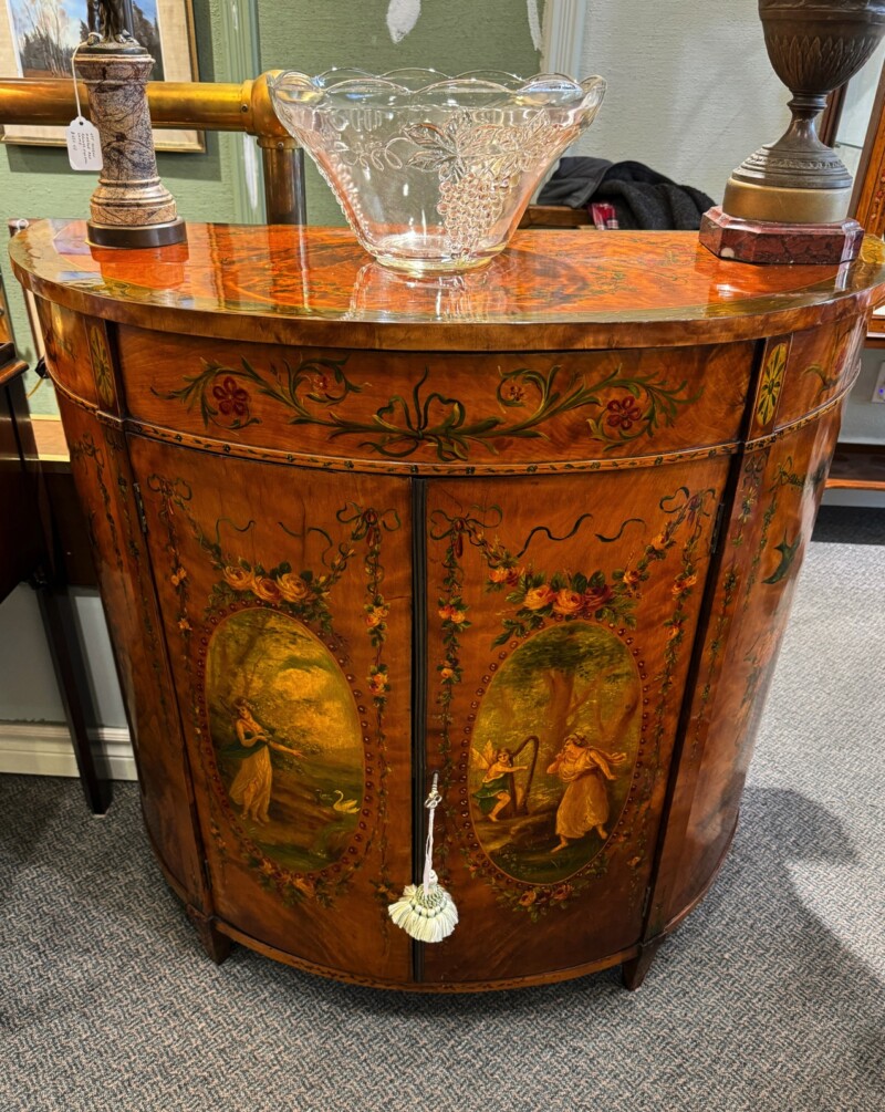 Georgian Period English Satinwood Demi-Lune 2 Door Cabinet with Hand Painted Romanticism Scenes