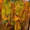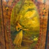 One door portrays a woman being serenaded by a cherub playing a harp, while the other depicts a woman standing beside a small waterfall with swans at her feet.