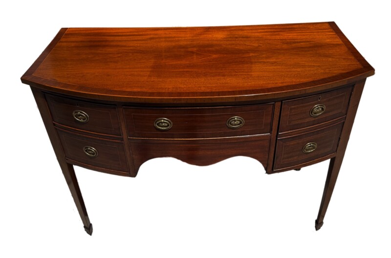 Georgian Bow Front Buffet /Server, Mahogany with Satinwood Inlay & Brass Handles Circa 1800