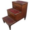 A lovely set of Georgian mahogany 3-tier library steps. Each step has an embossed, gilded tooled leather insert on the step top. The uppermost of the steps is hinged and opens to a deep box for storage.