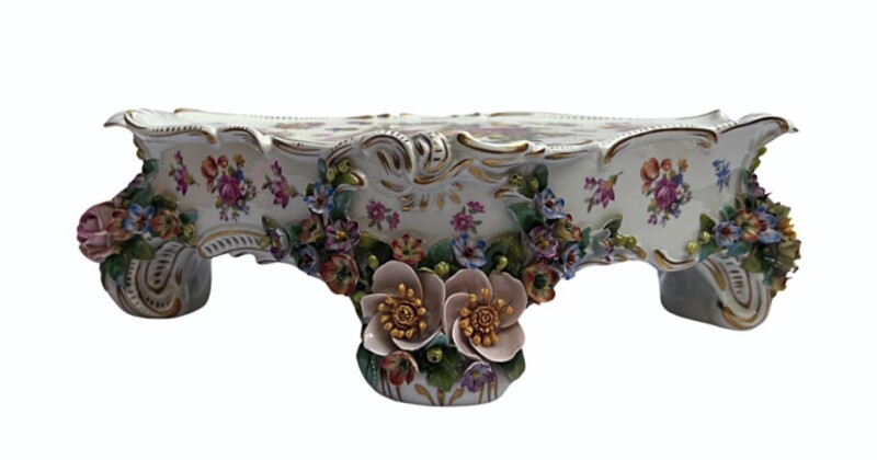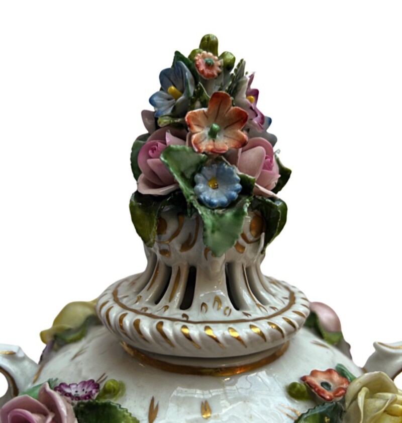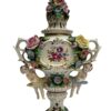 Owing to the age and delicate texture of the pieces, there are tiny fleabites on the top lid of one of the vases and on the little flowers and leaves, but considering the overall visual impact these imperfections are not very noticeable. The set is a stunning example of historical German porcelain at its finest and truly a rare find.