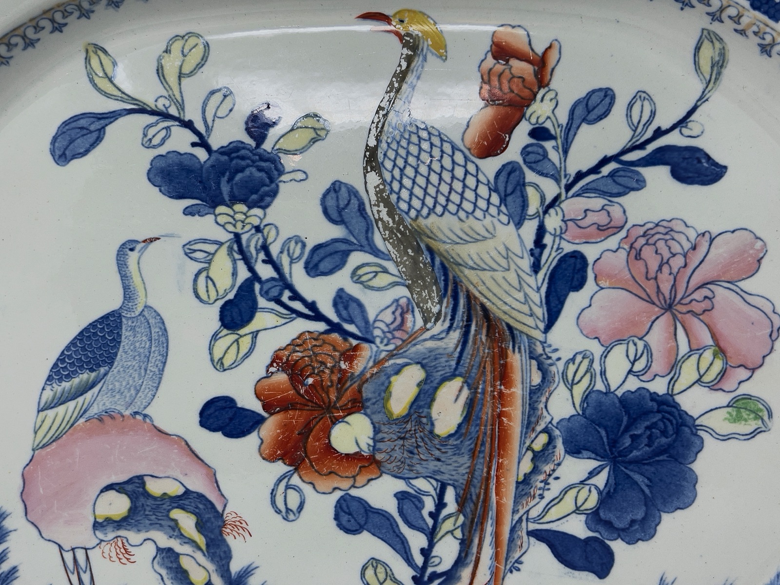 China Patterns, PorcelainsA handsome early Mason’s Ironstone platter in the celebrated “Oriental Pheasant” pattern, dating to circa 1820. This richly decorated design was one of Mason’s most popular early chinoiserie motifs, featuring long-tailed pheasants perched among flowering branches, stylized rockwork, and scrolling foliage.