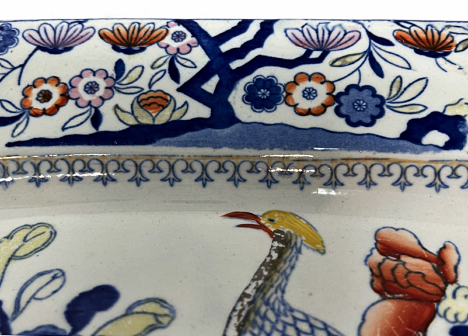 Gigantic Georgian Early Mason Impressed Patent Ironstone Serving Platter in “Oriental Pheasant” Pattern, Circa 1820