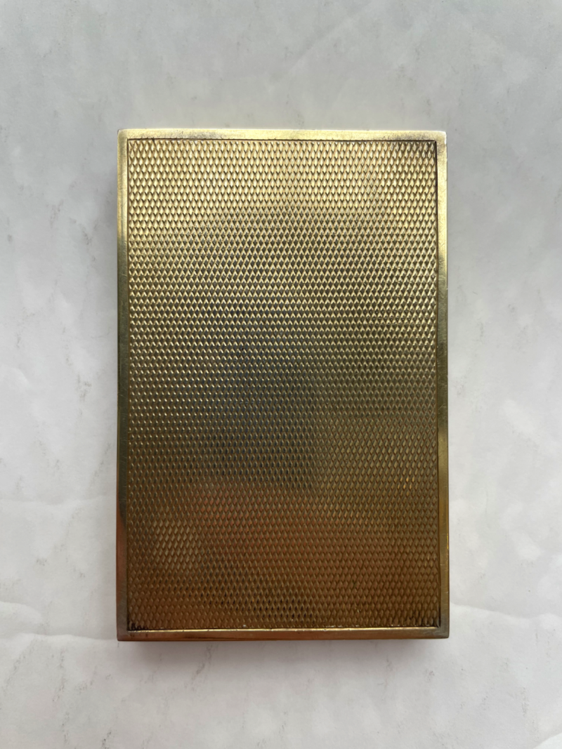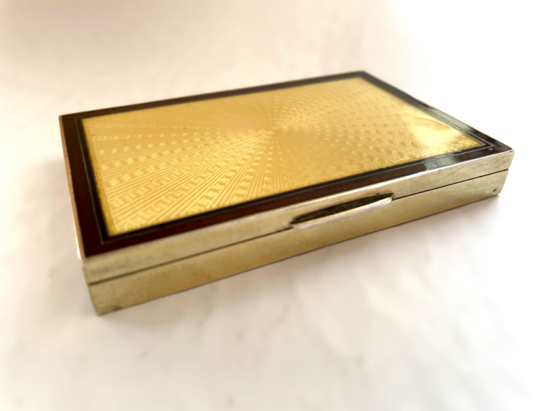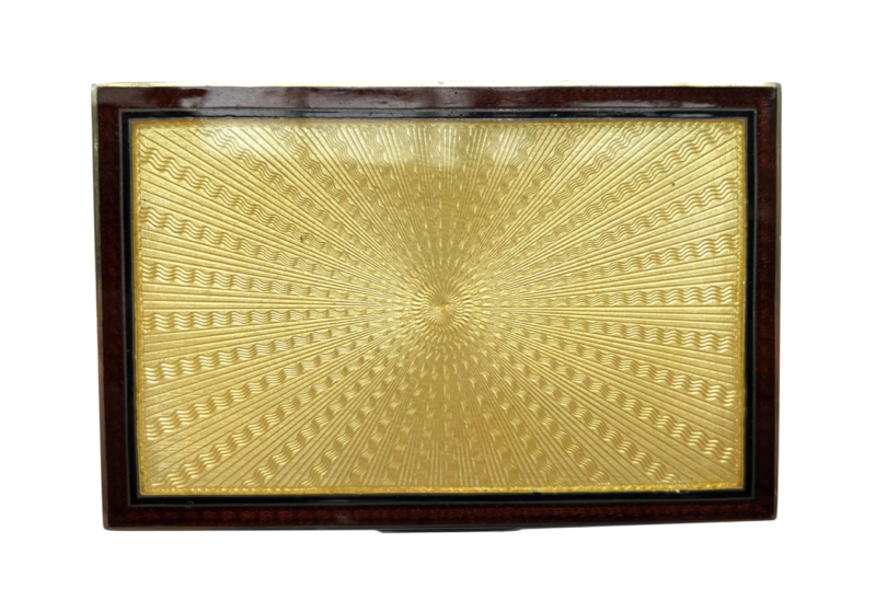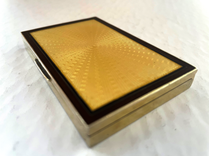 A wonderful continental (.900) gold wash silver and yellow guilloche and brown enamel bordered – small hinged box.