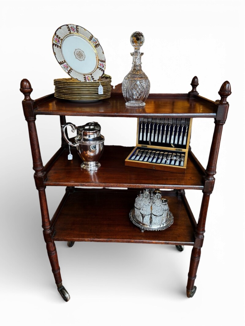 Gorgeous & Multifunctional English Georgian Era Mahogany Three Tier Server, Large Original Metal Casters, Early 1800s