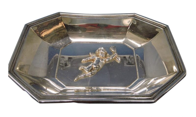 Gorham Sterling Silver Rectangular Dish with Repoussé Cherub Decoration – circa 1900