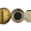 A very pretty makeup compact in guilloché enamel with hand painted roses in the centre front over a ‘lace’ enamel decoration.  The compact is hinged and opens to show a mirror and space for a round makeup insert.