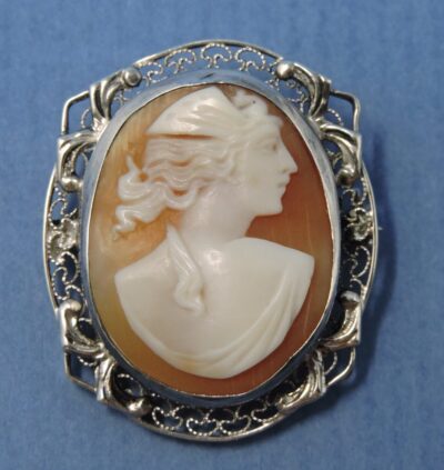 A very pretty makeup compact in guilloché enamel with hand painted roses in the centre front over a ‘lace’ enamel decoration.  The compact is hinged and opens to show a mirror and space for a round makeup insert.