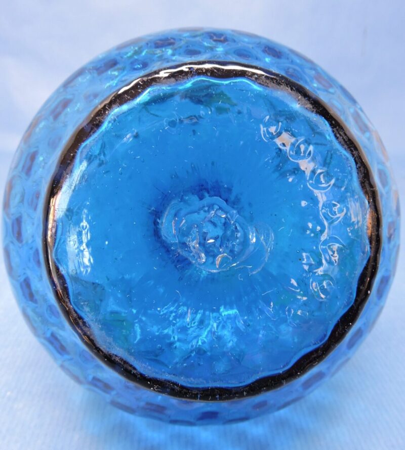 Hand-Blown Blue Coin Dot Glass Vase with Enamelled Daisies, Hearts and Leaves