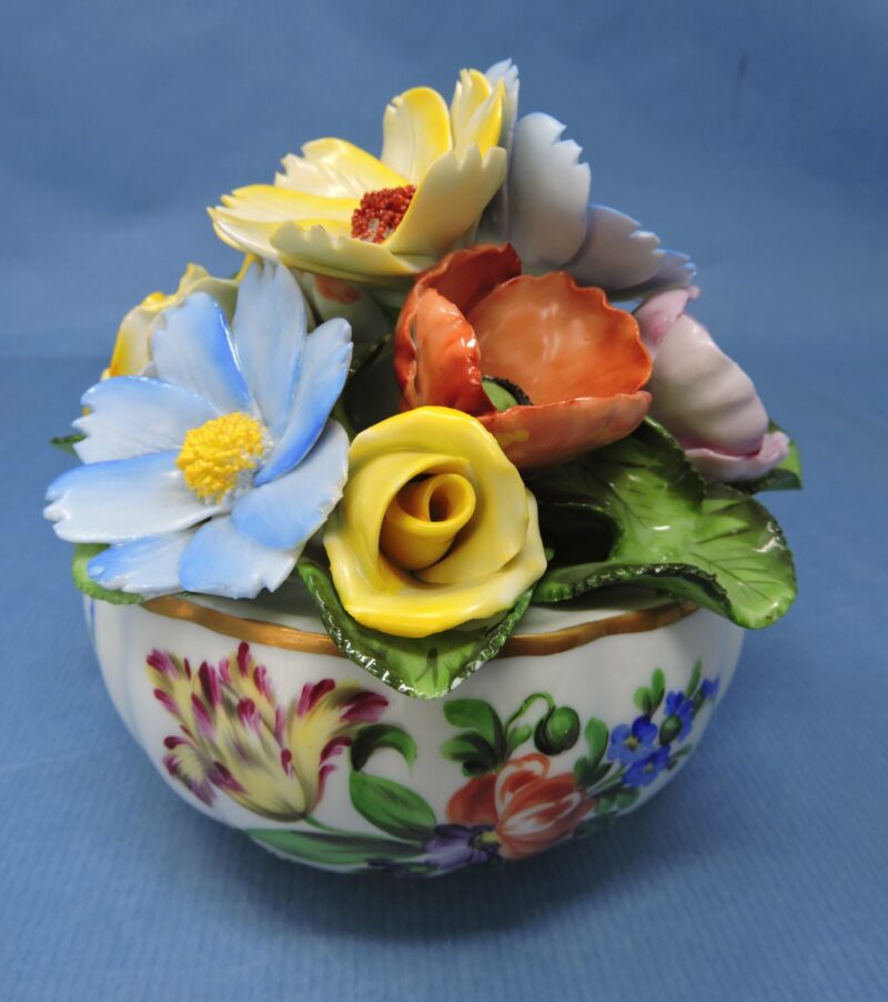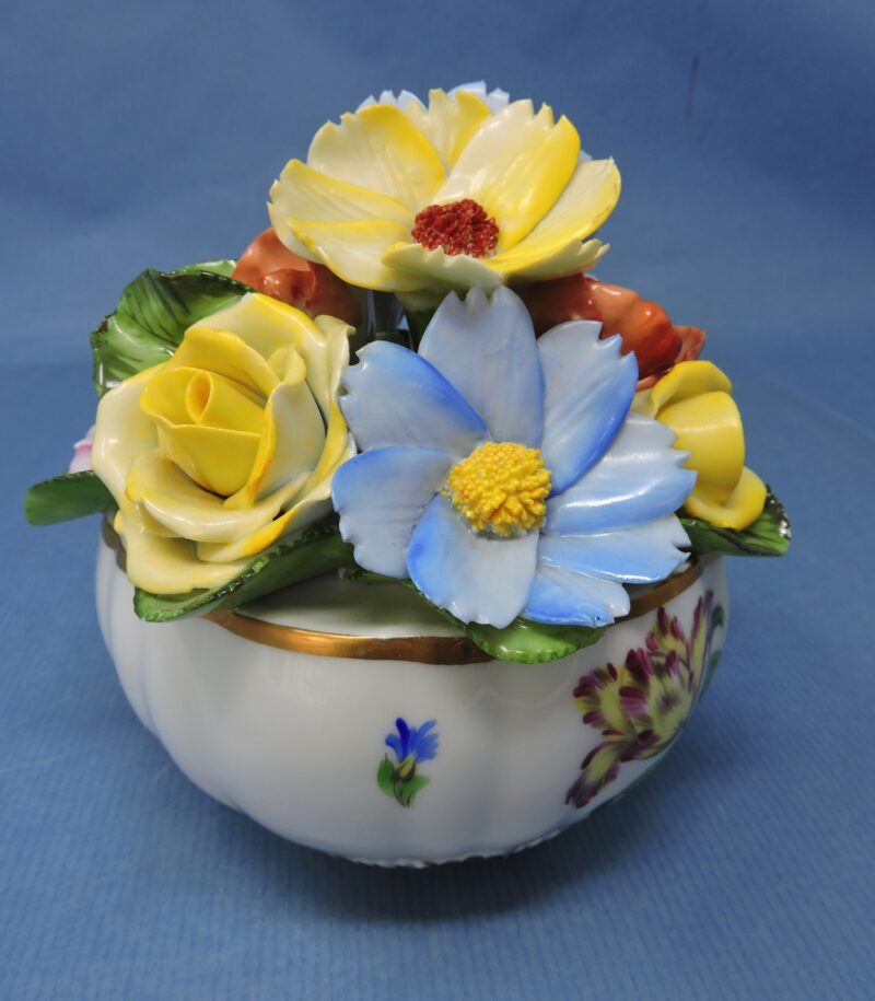 v** SOLD ARCHIVES **vA gorgeous hand-painted Herend Hungary porcelain bowl filled with a colourful porcelain floral bouquet.
