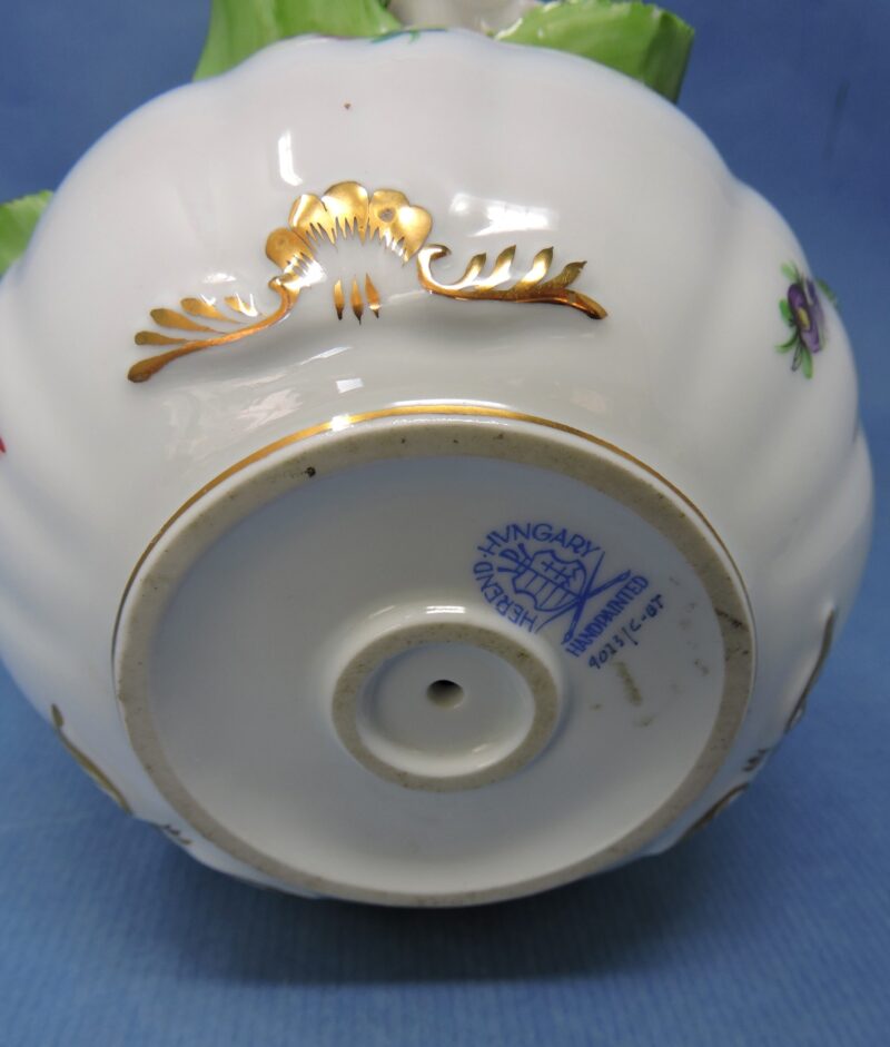 On the underside of the bowl is the Herend maker’s mark in blue and it reads “Herend Hungary Handpainted. 4023/C-BT”.