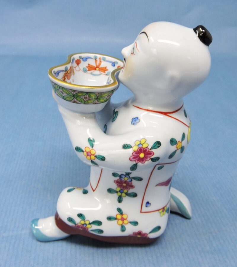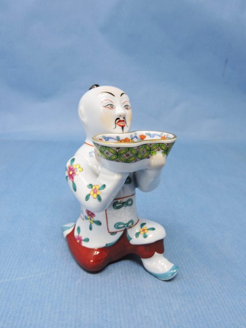 Hand-Painted Herend Hungary Porcelain Figurine of an Asian Man with a Bowl