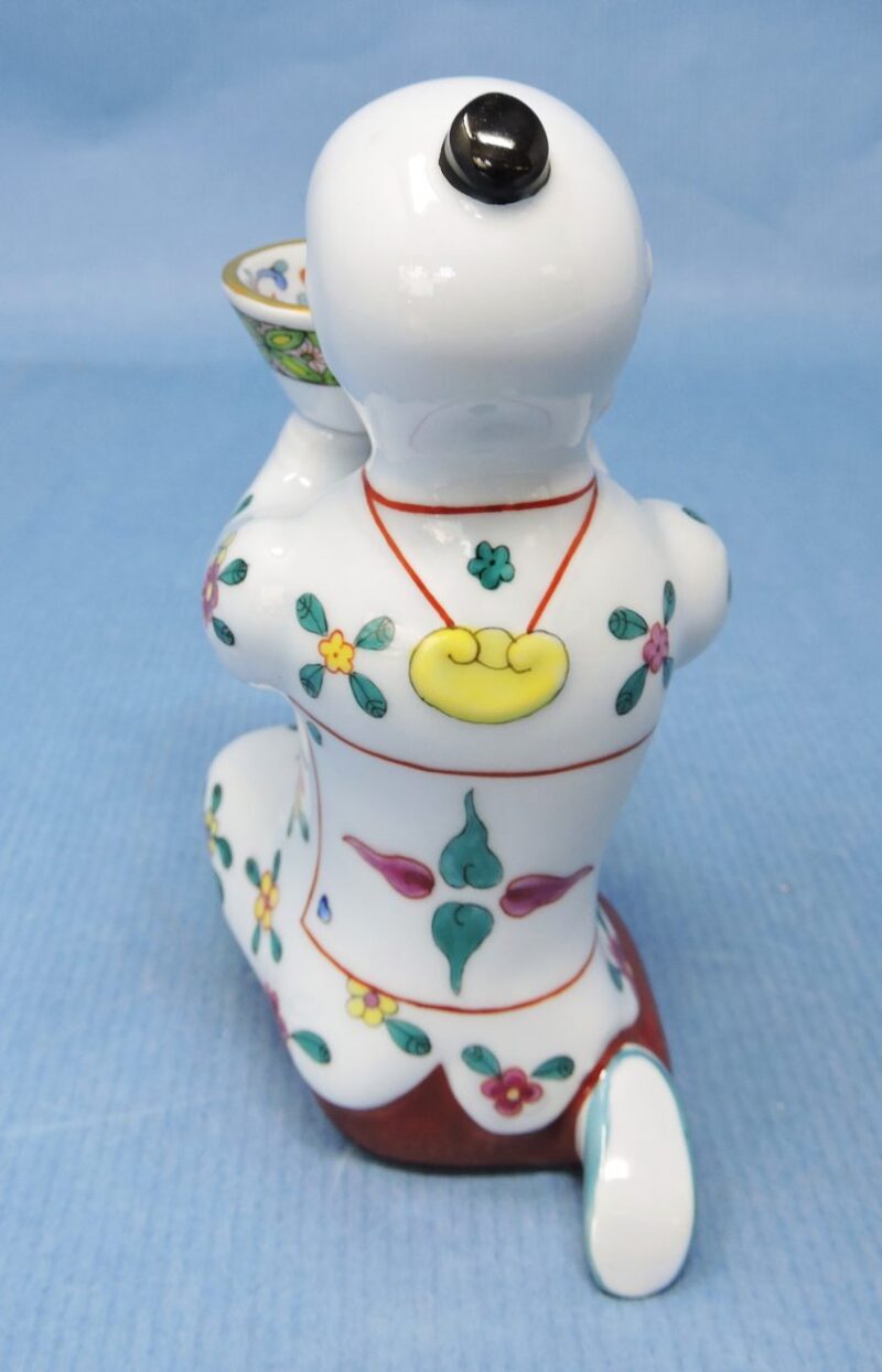 A wonderful hand-painted Herend Hungary porcelain figurine of an Asian man kneeling and holding a bowl in his hands. The colours on his robes and on the basket are quite vibrant and his face is very expressive.