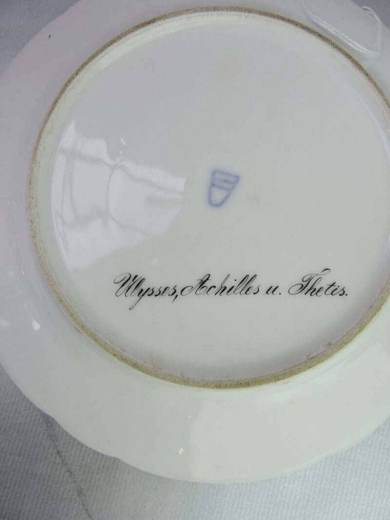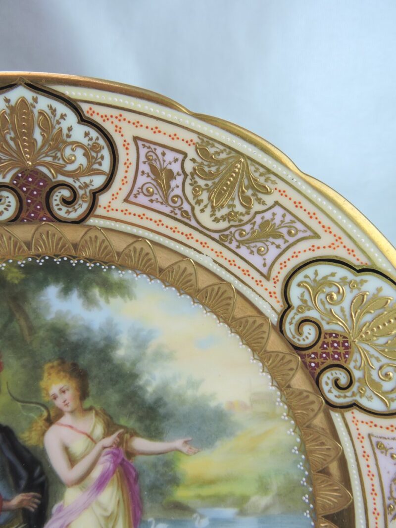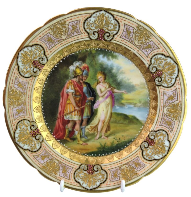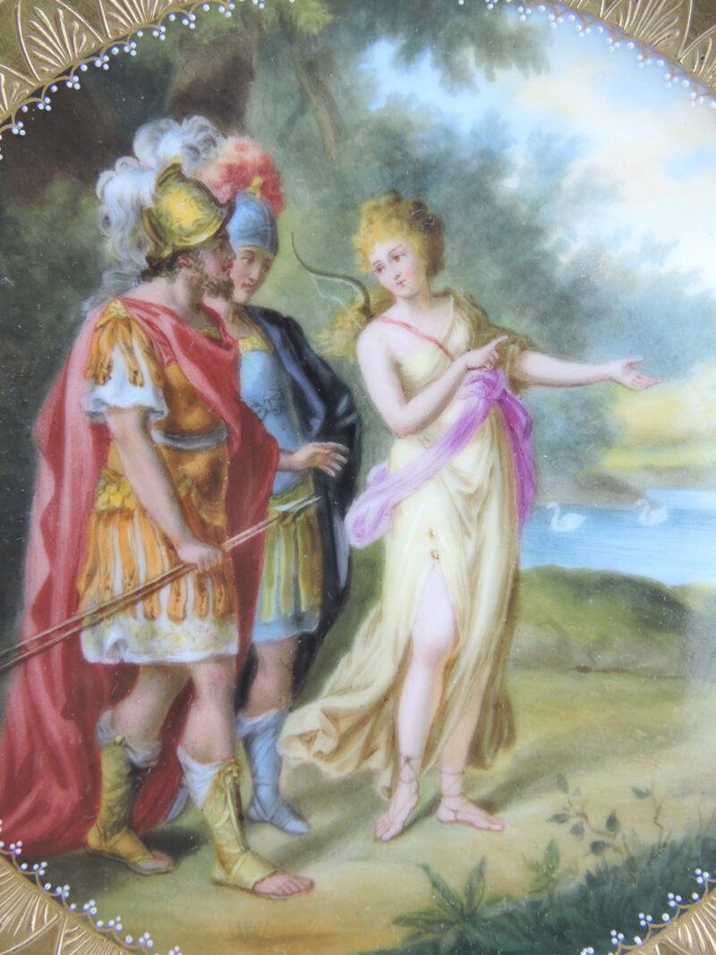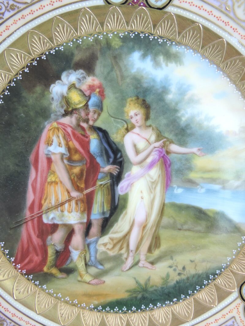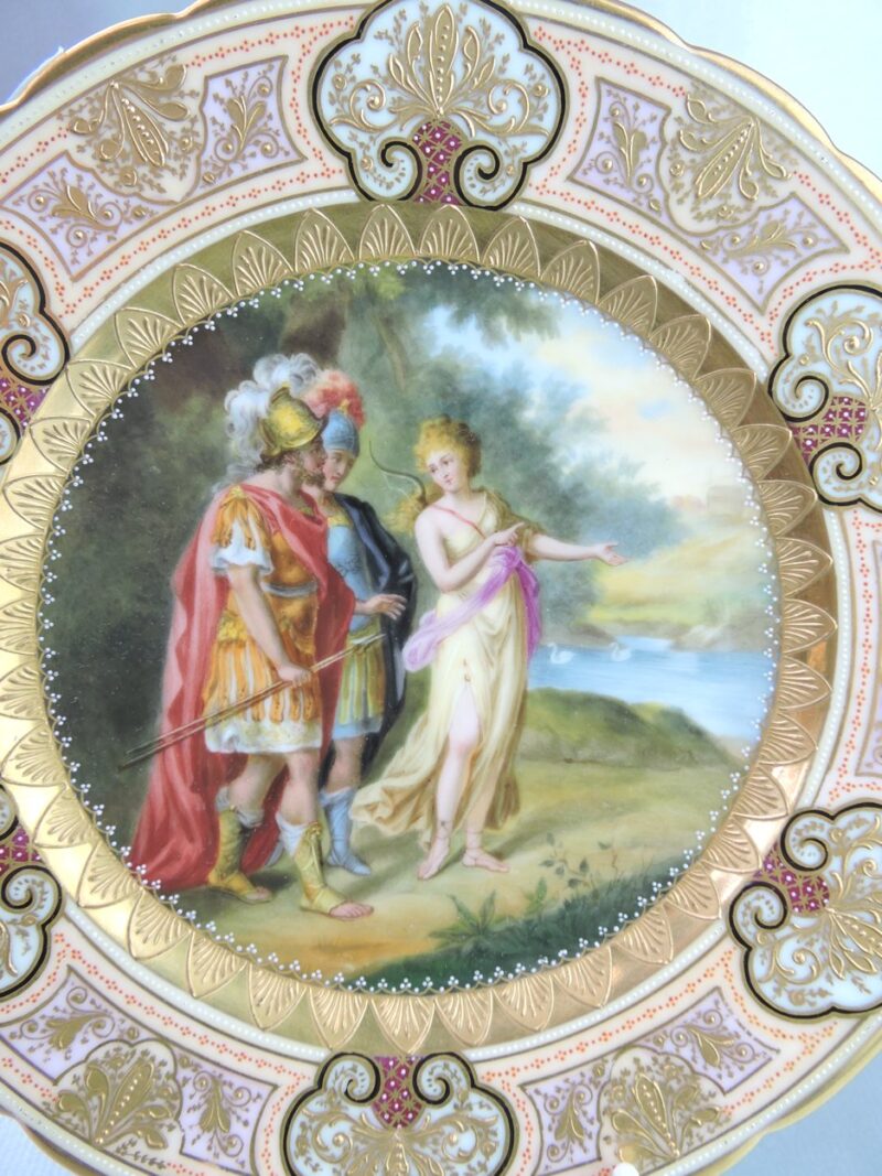 A beautiful quality hand painted Vienna plate with a scene titled “Ulysses, Achilles & Thetis ”