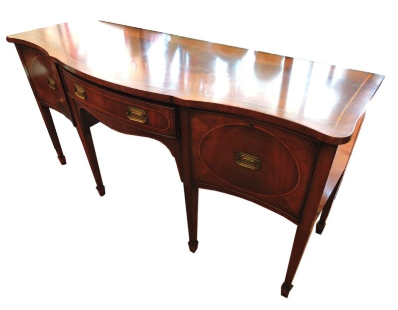 Hepplewhite Style – 6 foot Inlaid Mahogany Bow Front Sideboard with Tapered Legs