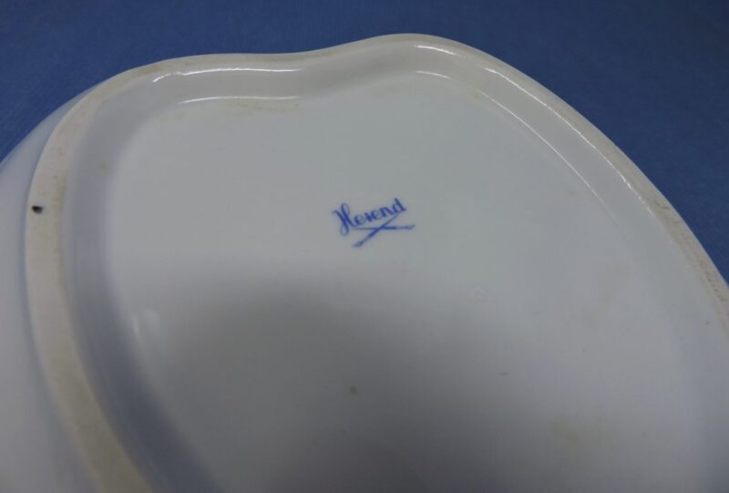 The underside of the bowl shows the Herend maker’s mark with the word “Herend” and crossed artist brushes in blue ink.