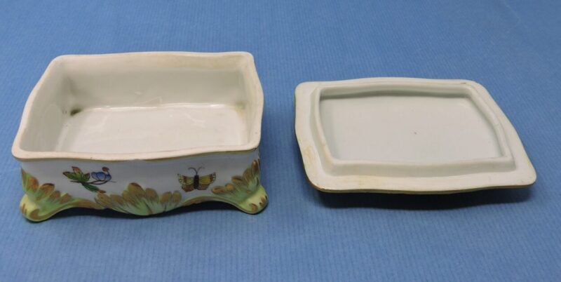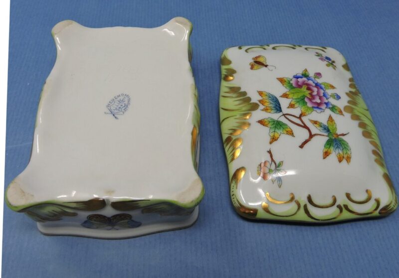 Herend Hungary Porcelain Rectangular Box with Lid – “Queen Victoria” Pattern with Flowers and Butterflies