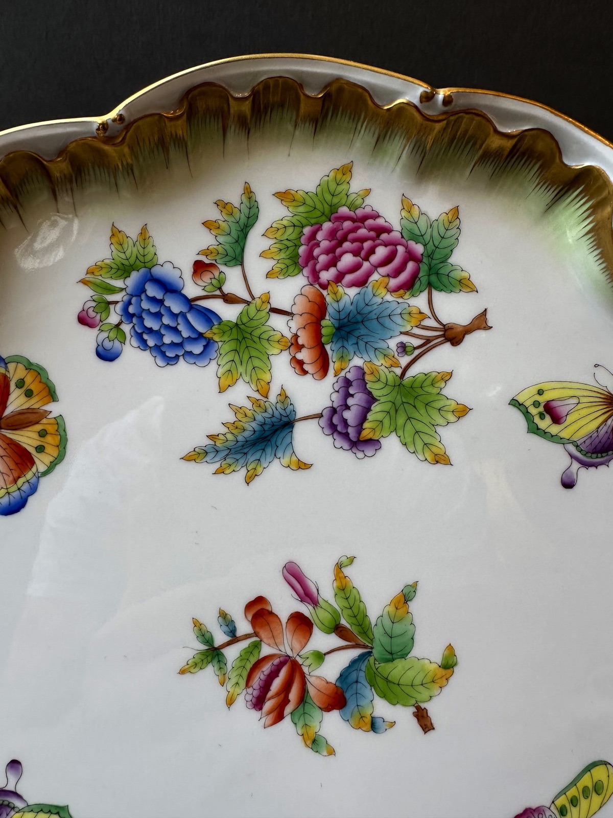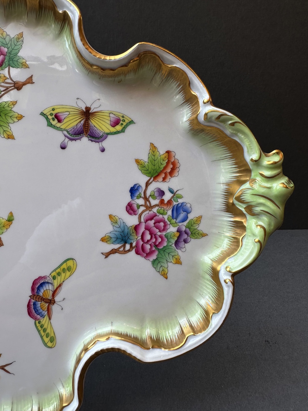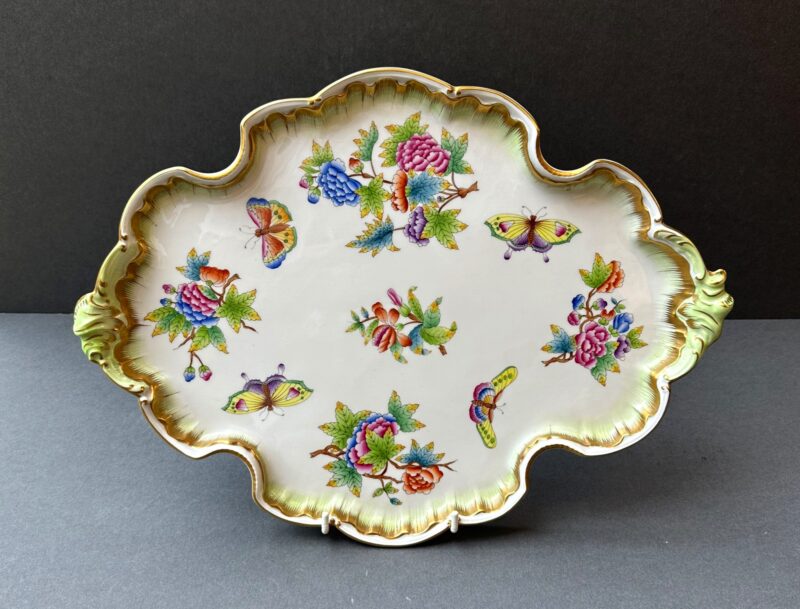 Herend Large 15 inch Porcelain Rococo Tray in the Queen Victoria Pattern