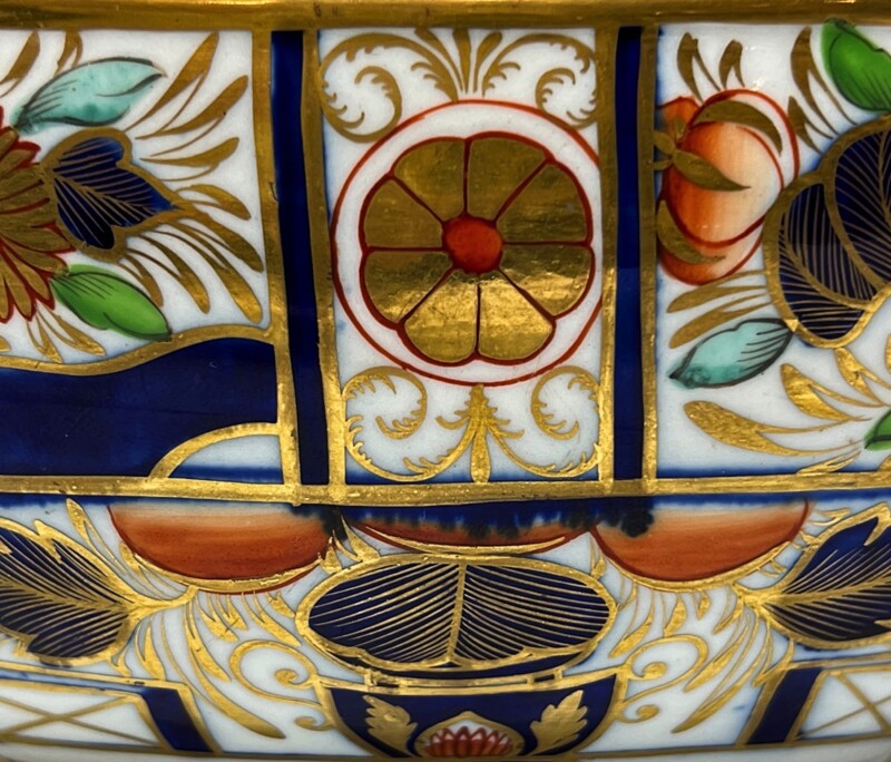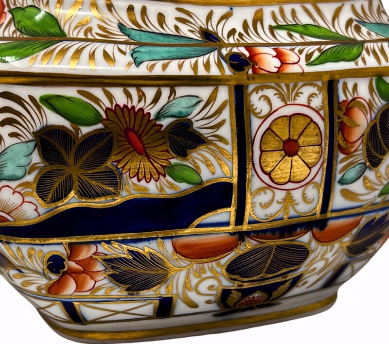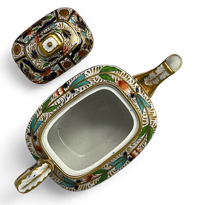 A gorgeous and intriguingly rare early 19th century example of a Worcester Regency period teapot and cover, London shape, decorated in Imari style and richly gilded. The sophisticated colour and pattern is one of the “Japan” patterns that came out around that time.