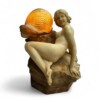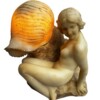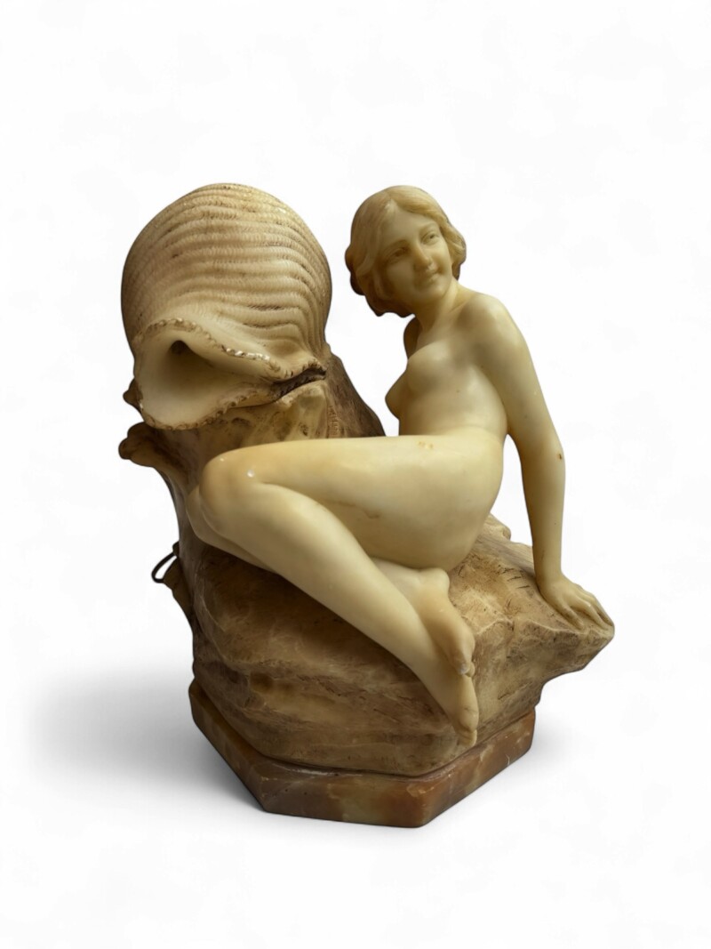Italian Alabaster Sculpture Lamp – Hand Carved Nude on Rocky Base Laying Beside SeaShell – circa 1920