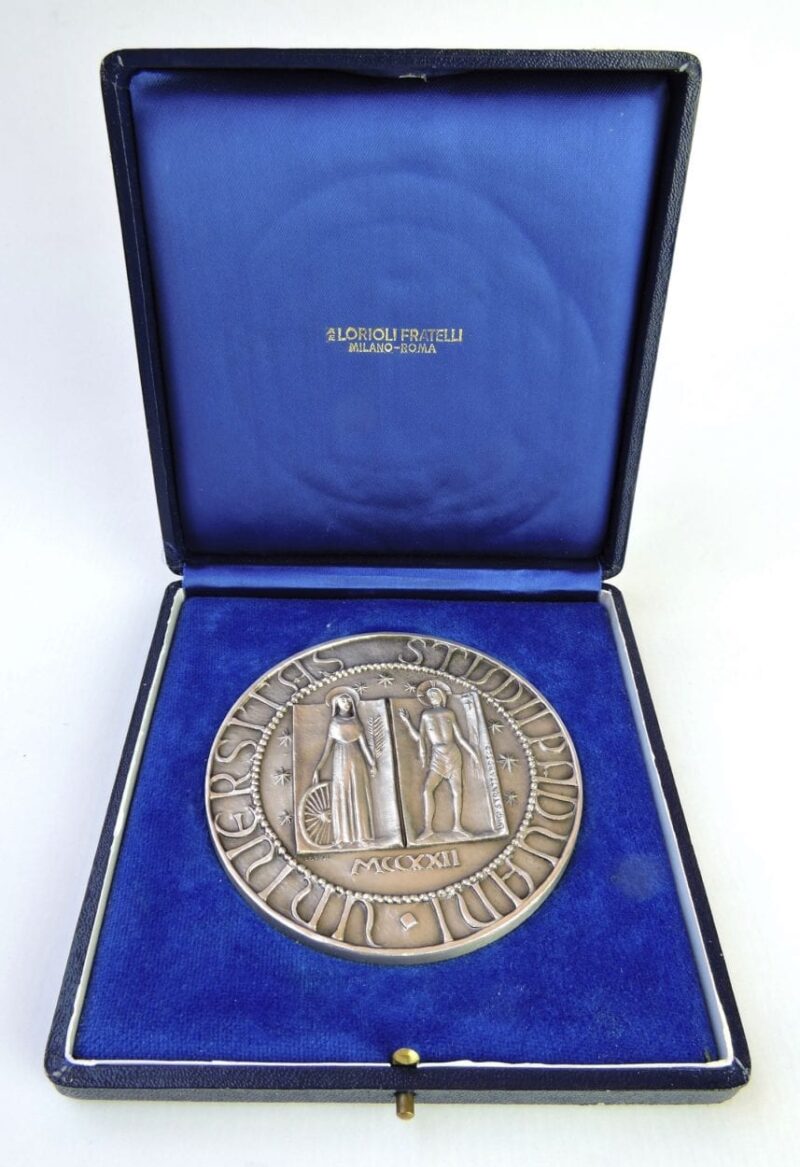 Italian Commemorative European (.800) Silver Medallion Coin in Original Leather Box – 4.75 inch diameter